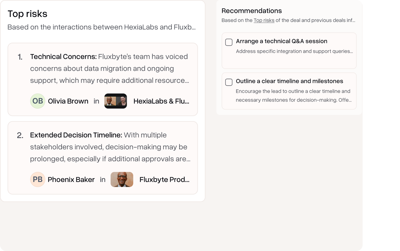 Approach every sales conversation with clarity and certainty. By surfacing timely guidance and actionable insights you can navigate high-stakes conversations with ease.