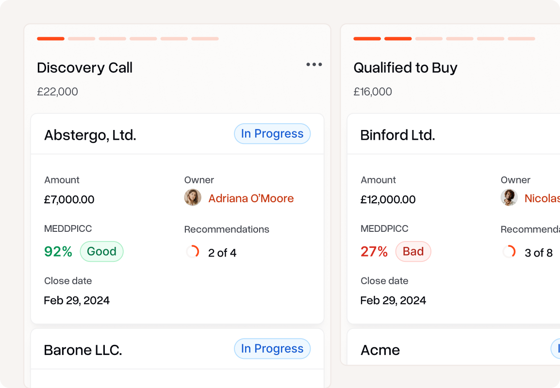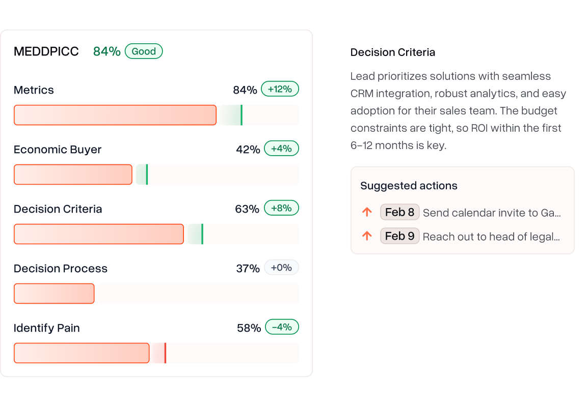 Get highly tailored coaching in every deal aligned to MEDDIC or BANT.