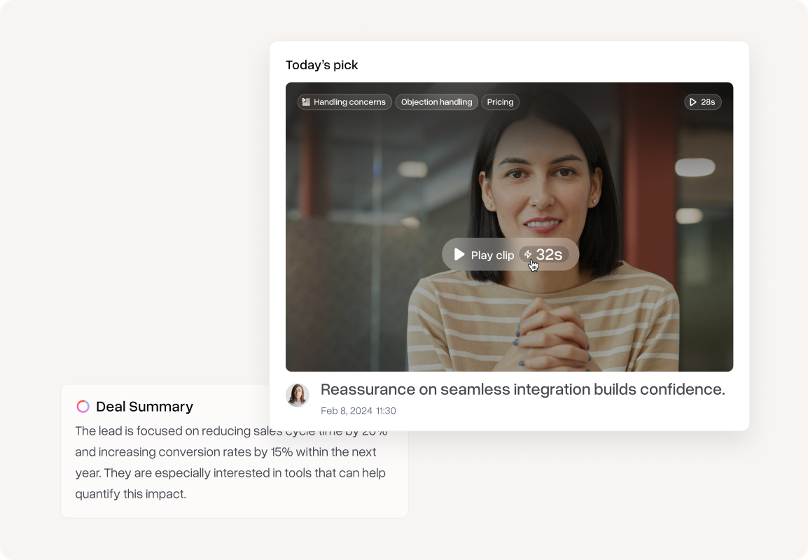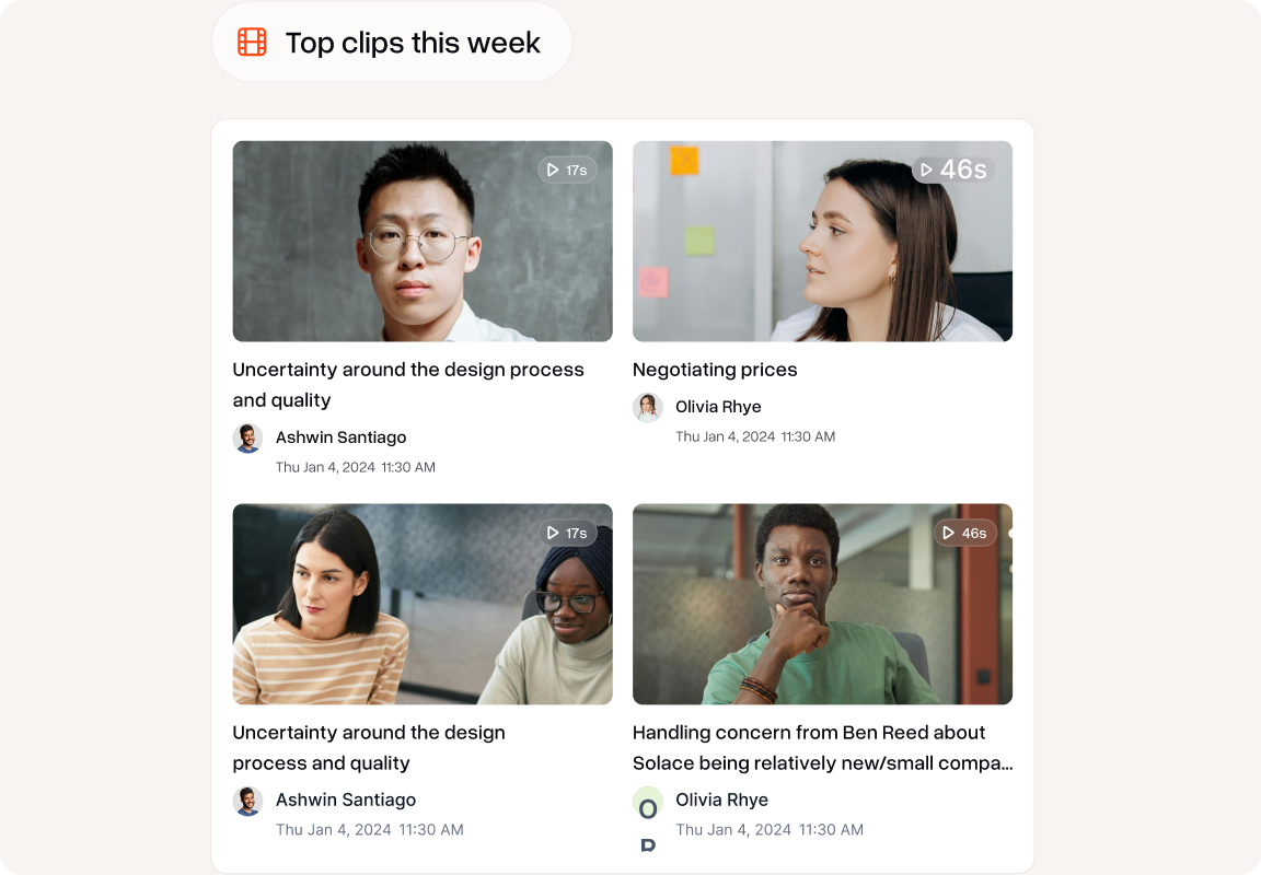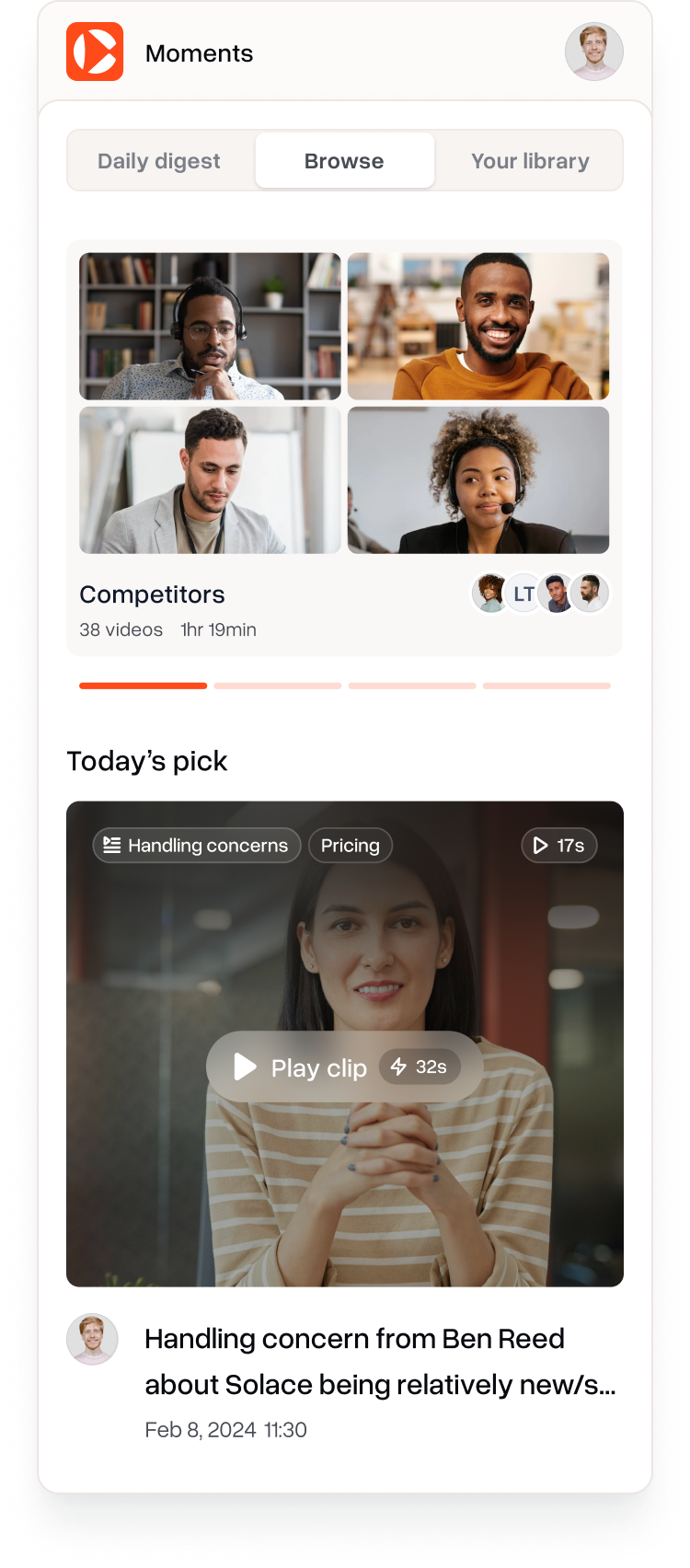 New reps can consume clips to ramp faster and accelerate the learning curve.
